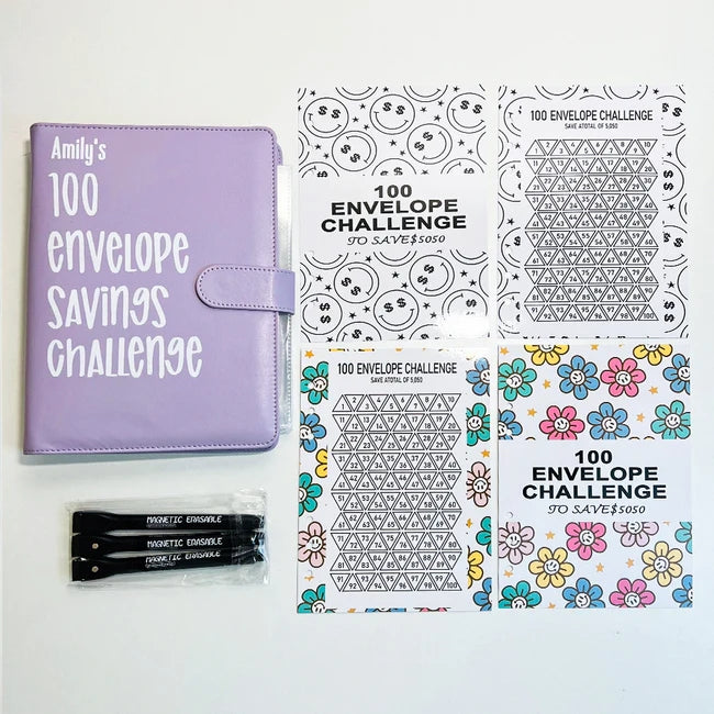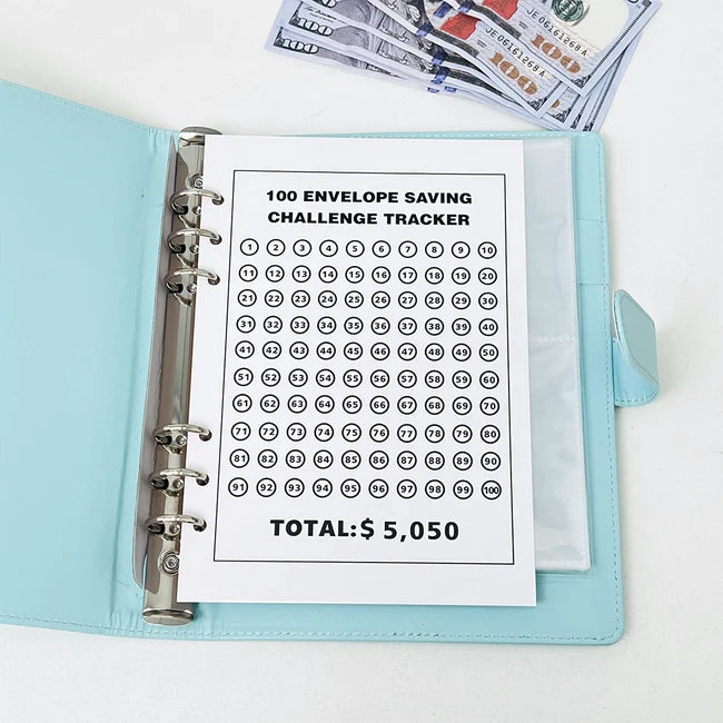 📏Comes with an A5 size binder (9 inches tall X 7 inches wide). 1 laminated reusable tracker. pouches either labeled 1-100 for the traditional way to save $5.050