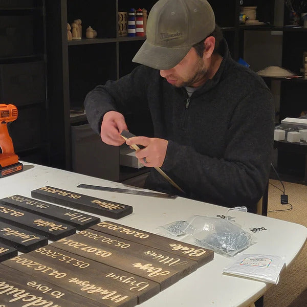 Each sign is made out of real wood, stained with ebony stain, and sealed with polyurethane. The sign is shipped with easy to hang sawtooth hangers.